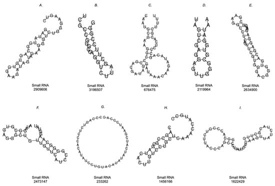 - Gruber, A.R.; Lorenz, R.; Bernhart, S.H.; Neuböck, R.; Hofacker, I.L. The Vienna RNA websuite. Nucleic Acids Res. 2008, 36, W70–W74. [Google Scholar] [CrossRef]