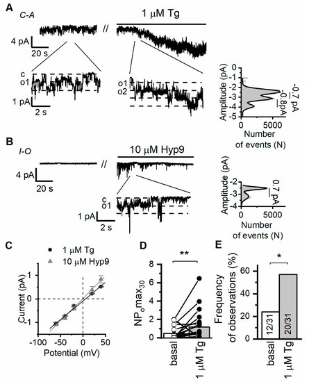 - Shalygin, A.; Kolesnikov, D.; Glushankova, L.; Gusev, K.; Skopin, A.; Skobeleva, K.; Kaznacheyeva, E.V. Role of STIM2 and Orai Proteins in Regulating TRPC1 Channel Activity upon Calcium Store Depletion. Cell Calcium 2021, 97, 102432. [Google Scholar] [CrossRef]
