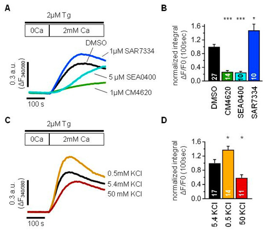 - Poburko, D.; Liao, C.H.; Lemos, V.S.; Lin, E.; Maruyama, Y.; Cole, W.C.; Van Breemen, C. Transient Receptor Potential Channel 6-Mediated, Localized Cytosolic [Na+] Transients Drive Na+/Ca2+ Exchanger-Mediated Ca2+ Entry in Purinergically Stimulated Aorta Smooth Muscle Cells. Circ. Res. 2007, 101, 1030–1038. [Google Scholar] [CrossRef] [PubMed]