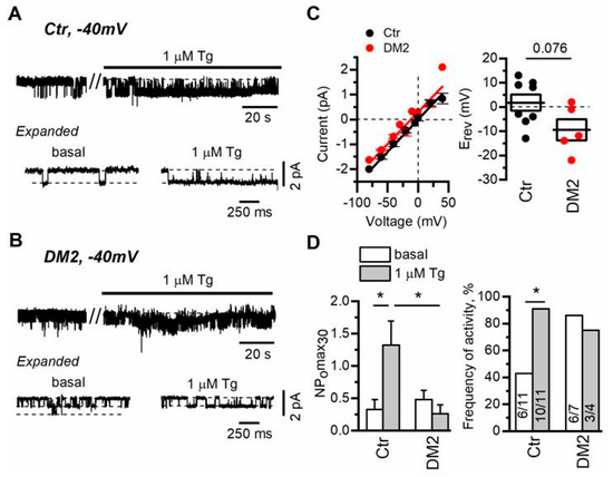 2.3. Decrease of Tg-Induced TRPC6 Single Channel Activity in Podocytes of Type 2 Diabetic Rats