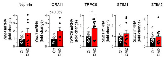 - Spires, D.; Ilatovskaya, D.V.; Levchenko, V.; North, P.E.; Geurts, A.M.; Palygin, O.; Staruschenko, A. Protective Role of Trpc6 Knockout in the Progression of Diabetic Kidney Disease. Am. J. Physiol. Ren. Physiol. 2018, 315, F1091–F1097. [Google Scholar] [CrossRef]
