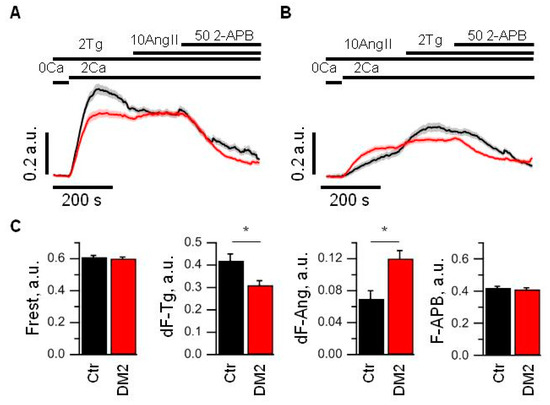 2.4. DM2 Developments Result in Reorganization of Store Depletion-Induced Ca2+ Entry in Podocytes of Type 2 Diabetic Rats