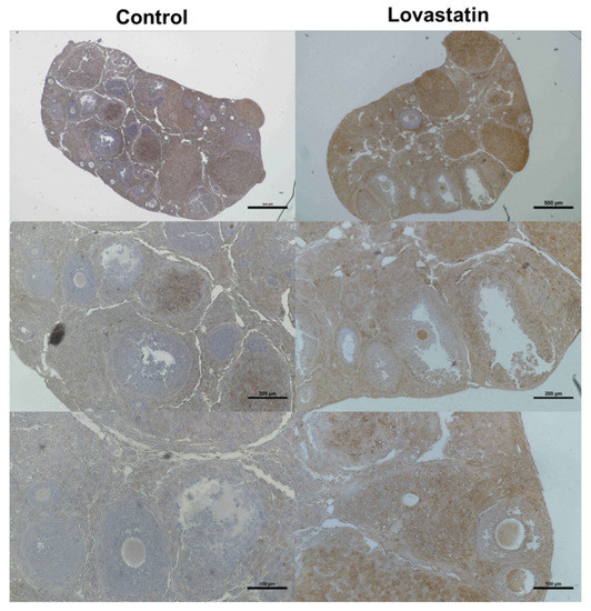 Therefore, we investigated whether lovastatin enhances LDLR expression in mouse ovaries and analyzed oogenesis and follicular development in lovastatin-treated mouse ovaries.