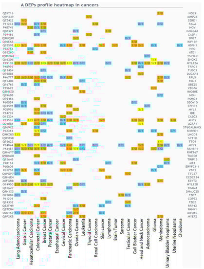 Profiling of the proteins differently expressed during the development of various malignant diseases was performed using the dbDEPC 3.0 database [].