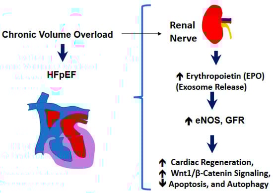 Pushpakumar, S.; Singh, M.; Zheng, Y.; Akinterinwa, O.E.; Mokshagundam, S.P.L.; Sen, U.; Kalra, D.K.; Tyagi, S.C. Renal Denervation Helps Preserve the Ejection Fraction by Preserving Endocardial-Endothelial Function during Heart Failure. Int. J. Mol. Sci. 2023, 24, 7302. https://doi.org/10.3390/ijms24087302