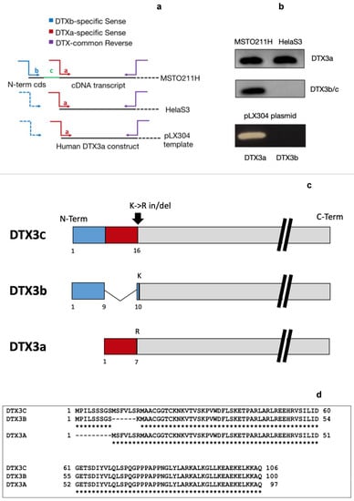 2.4. MSTO211H and HelaS3 Express Different DTX3 Isoforms and MSTO211H Expresses a Novel DTX3 E3 Ligase N-Terminal Variant
