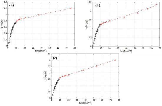 | kd1 (mg/g min0.5) | Duration (min) | R2 | kd2 (mg/g min0.5) | Duration (min) | R2 | |