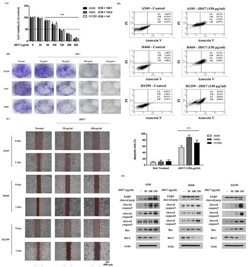 2.1. JI017-Induced Apoptosis and Inhibited Proliferation in Lung Cancer Cells