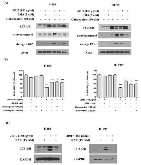 Chicago/Turabian StyleKu, Jin Mo, Min Jeong Kim, Yu-Jeong Choi, Seo Yeon Lee, Ji-Yeong Im, Yong-Kyu Jo, Sanghoon Yoon, Ji-Hyun Kim, Jie Won Cha, Yong Cheol Shin, and et al. 2023. "JI017 Induces Cell Autophagy and Apoptosis via Elevated Levels of Reactive Oxygen Species in Human Lung Cancer Cells" International Journal of Molecular Sciences 24, no. 8: 7528. https://doi.org/10.3390/ijms24087528