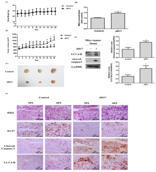2.5. Effect of JI017 Suppressed Cell Growth In Vivo