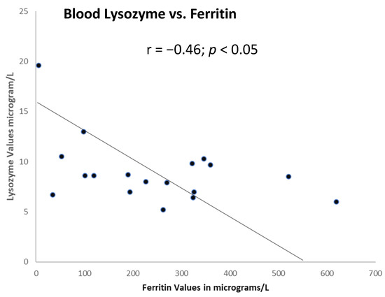 Significant correlation between lysozyme and ferritin in the serum.