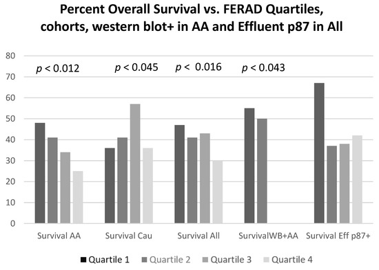Bar diagram of overall survival by FERAD ratio quartile. Abbreviations: AA—African American; Cau—Caucasian; Eff—Effluent; WB—Western blot.