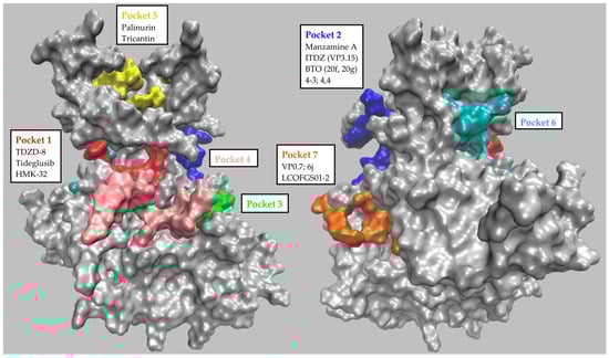 | Inhibitor | Potency (Kd/IC50) | In Vitro Assays | In Cellulo/Ex Vivo Assays | In Vivo/Clinical Trial | Pocket (Docking) | Preclinical Models | Ref. |