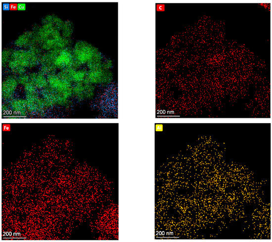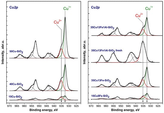 | Catalyst | [Cu]/[Si] | [Fe]/[Si] | [O]/[Si] | [C]/[Si] | %, Cu2+ | %, Cu1+ | %, Cu0 |