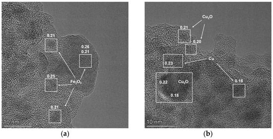 | 10Cu10Fe-SiO2 (0.9) h | 215 | 1.05 | SiO2 (amorph.)/- |