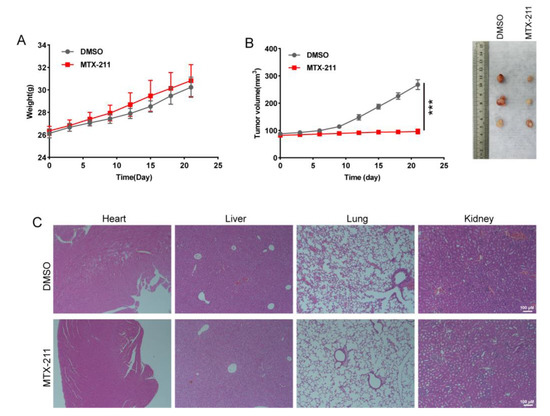 2.6. MTX-211 Suppresses the Growth of BLCA Xenograft In Vivo