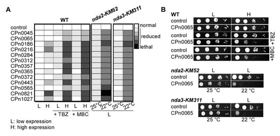 2.3. S. pombe Tubulin Mutants Became Synthetically Lethal upon the Expression of Chlamydial Genes