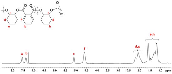 1H NMR spectrum (400 MHz, CDCl3 and 298 K) of poly(cyclohexene phthalate-block-cyclohexene carbonate) obtained from a mixture of PA, CHO, and CO2 (entry 2 in Table 3).
