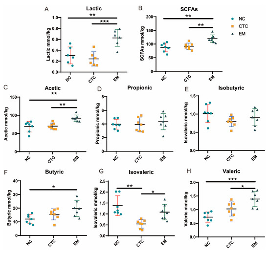 4.7. Cecal Lactic Acid and SCFAs Analysis