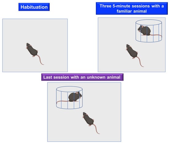 Social recognition test. Repeated exposure of the animal to a familiar individual precedes a final confrontation with an unknown individual, at which time the degree of interaction with the previous one is compared to the degree of interaction with respect to the previous one.