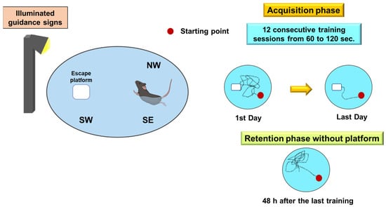 Morris water maze. This test evaluates the latency time that the animal takes to reach the submerged platform, which represents a reinforcing escape stimulus. If the platform remains in the same place, the spatial reference memory is evaluated, and if it varies, the spatial working memory is analyzed.