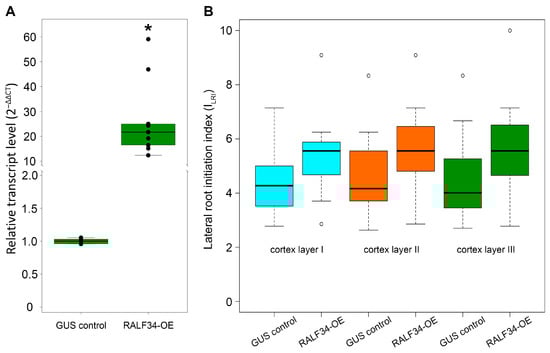 - Murphy, E.; Vu, L.D.; Van den Broeck, L.; Lin, Z.; Ramakrishna, P.; van de Cotte, B.; Gaudinier, A.; Goh, T.; Slane, D.; Beeckman, T.; et al. RALFL34 regulates formative cell divisions in Arabidopsis pericycle during lateral root initiation. J. Exp. Bot. 2016, 67, 4863–4875. [Google Scholar] [CrossRef] [PubMed]