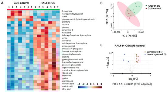 2.10. The Effects of CsRALF34 on Root Metabolic and Signaling Pathways