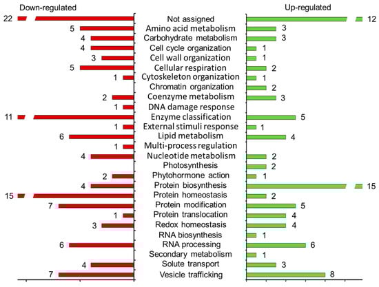 - Schwacke, R.; Ponce-Soto, G.Y.; Krause, K.; Bolger, A.M.; Arsova, B.; Hallab, A.; Gruden, K.; Stitt, M.; Bolger, M.E.; Usadel, B. MapMan4: A refined protein classification and annotation framework applicable to multi-omics data analysis. Mol. Plant 2019, 12, 879–892. [Google Scholar] [CrossRef]