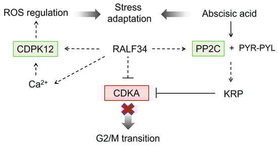 - Chen, J.; Yu, F.; Liu, Y.; Du, C.; Li, X.; Zhu, S.; Wang, X.; Lan, W.; Rodriguez, P.L.; Liu, X.; et al. FERONIA interacts with ABI2-type phosphatases to facilitate signaling cross-talk between abscisic acid and RALF peptide in Arabidopsis. Proc. Natl. Acad. Sci. USA 2016, 113, E5519–E5527. [Google Scholar] [CrossRef]