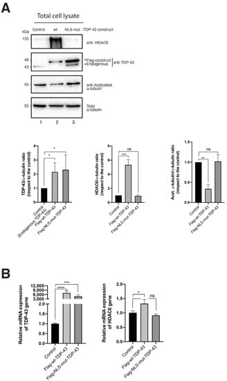 2.1. TDP-43 Expression and Its Effect on HDAC6 Expresion