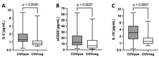 | IL-2 (pg/mL) | r = 0.181 | p = 0.105 | r = 0.308 | p = 0.037 | r = −0.032 | p = 0.854 |