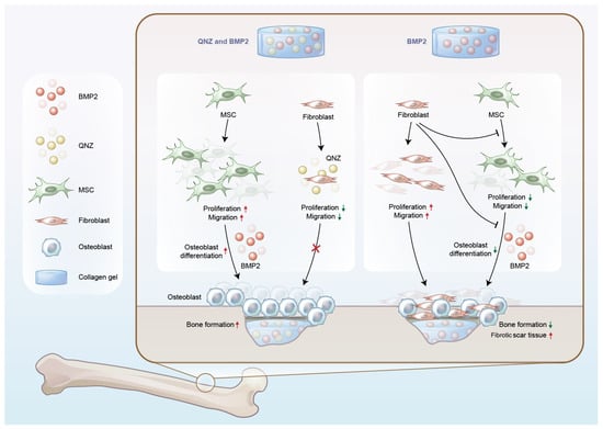 2.2. QNZ Promoted BMP2-Mediated Homing and Osteoblast Differentiation in MSCs When Co-Cultured with Fibroblasts