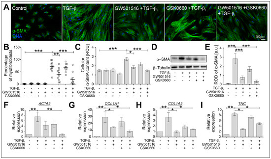 2.2. The TGF-β-Induced Myofibroblastic Transitions of HBFs Are Suppressed after PPARδ Agonist Administration