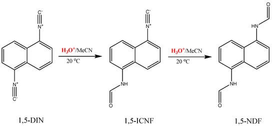 2.3. The Hydrolysis of 1,5-Diisocyanonaphthalene and the Formation of 1-Formamido-5-Isocyanonaphthalene (ICAF)
