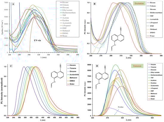 - Nagy, M.; Fiser, B.; Szőri, M.; Vanyorek, L.; Viskolcz, B. Optical Study of Solvatochromic Isocyanoaminoanthracene Dyes and 1,5-Diaminoanthracene. Int. J. Mol. Sci. 2022, 23, 1315. [Google Scholar] [CrossRef]