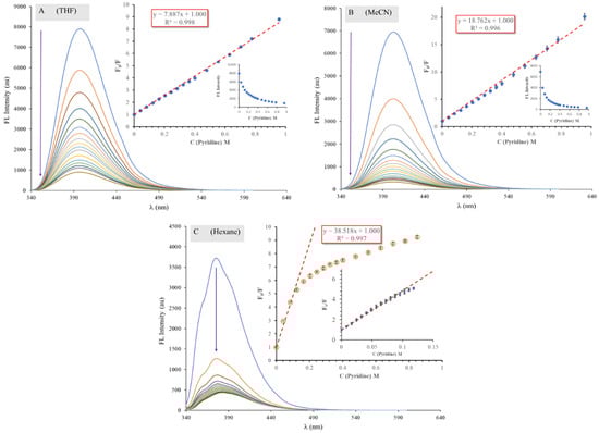 2.5. Analysis of ICNF Fluorescence Quenching by Pyridine