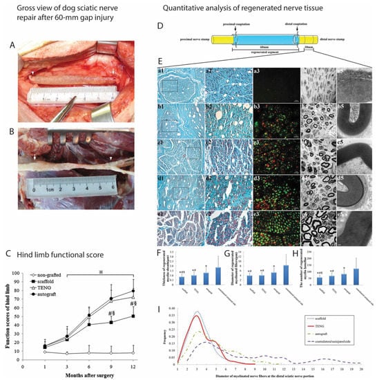 - Ding, F.; Wu, J.; Yang, Y.; Hu, W.; Zhu, Q.; Tang, X.; Liu, J.; Gu, X. Use of tissue-engineered nerve grafts consisting of a chitosan/poly(lactic-co-glycolic acid)-based scaffold included with bone marrow mesenchymal cells for bridging 50-mm dog sciatic nerve gaps. Tissue Eng. Part A 2010, 16, 3779–3790. [Google Scholar] [CrossRef] [PubMed]