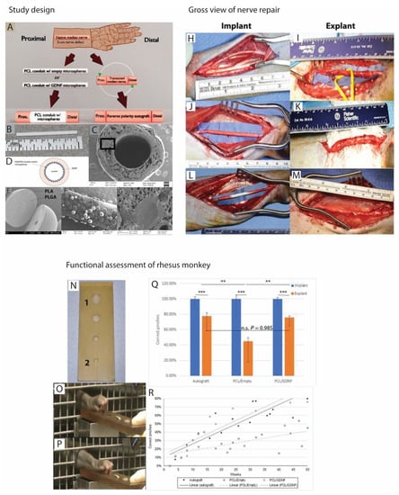 - Jiang, C.Q.; Hu, J.; Xiang, J.P.; Zhu, J.K.; Liu, X.L.; Luo, P. Tissue-engineered rhesus monkey nerve grafts for the repair of long ulnar nerve defects: Similar outcomes to autologous nerve grafts. Neural Regen. Res. 2016, 11, 1845–1850. [Google Scholar] [PubMed]