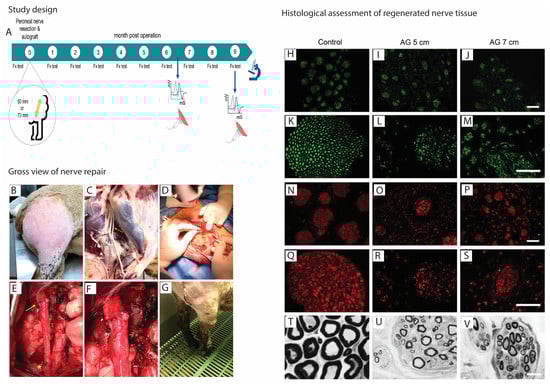 - Kaizawa, Y.; Kakinoki, R.; Ikeguchi, R.; Ohta, S.; Noguchi, T.; Oda, H.; Matsuda, S. Bridging a 30 mm defect in the canine ulnar nerve using vessel-containing conduits with implantation of bone marrow stromal cells. Microsurgery 2016, 36, 316–324. [Google Scholar] [CrossRef] [PubMed]