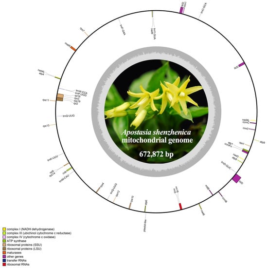 Orchidaceae is the largest family of angiosperms and monocots with over 700 genera and approximately 28,000 species []. Apostasia is one of the two genera that form the subfamily Apostasioideae, which is a primitive group located at the base of the Orchidaceae phylogenetic tree []. Moreover, Apostasia has special morphology that demonstrates “primitive” traits similar to those of Curculigo crassifolia, are considered the closest to the “pseudoorchids” speculated by Darwin. This makes them ideal for studying orchids and phylogenetic evolution []. Therefore, we conducted a mitogenome study of A. shenzhenica to provide genetic resources for further studies on the evolution of Orchidaceae. Meanwhile, we combine the available mitogenomes of monocots to provide further evidence for the phylogenetic relationships of monocots.