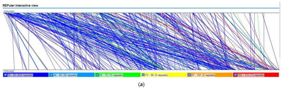 - Kurtz, S.; Choudhuri, J.V.; Ohlebusch, E.; Schleiermacher, C.; Stoye, J.; Giegerich, R. REPuter: The manifold applications of repeat analysis on a genomic scale. Nucleic Acids Res. 2001, 29, 4633–4642. [Google Scholar] [CrossRef] [PubMed]