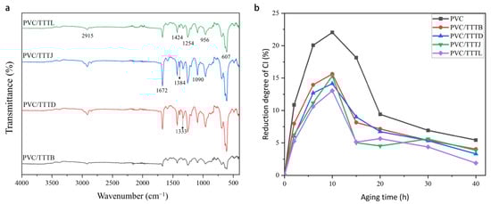 - Li, X.; Duan, X.; Chen, S.; Chen, H. A macromolecular PVC plasticizer with enhanced antimigration and excellent UV-shielding performance. Mater. Lett. 2022, 327, 133034. [Google Scholar] [CrossRef]