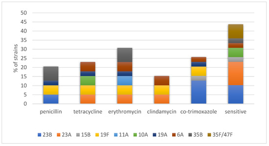 - Kawaguchiya, M.; Urushibara, N.; Aung, M.S.; Shinagawa, M.; Takahashi, S.; Kobayashi, N. Serotype distribution, antimicrobial resistance and prevalence of pilus islets in pneumococci following the use of conjugate vaccines. J. Med. Microbiol. 2017, 66, 643–650. [Google Scholar] [CrossRef]