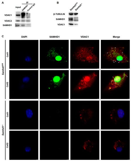 2.6. SAMHD1 Regulates Mitochondrial Function via Interacting with VDAC1