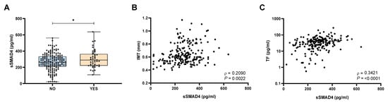 2.2. Patients with Atherosclerosis Exhibited Elevated sSMAD4 Levels