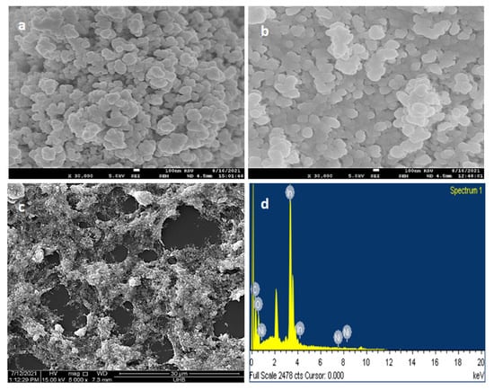 2.3. Scanning Electron Microscopy (SEM) and EDS Analysis of rGO/Ni-In2O3