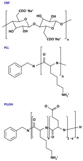 Chemical structures of CNF, PLL, and PLLGA in the hydrogel.