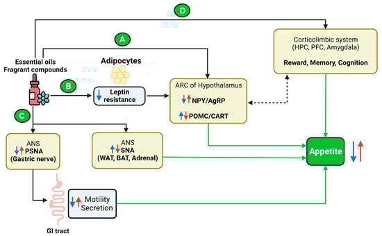 3.5.1. Essential Oils and Fragrant Compounds Regulate Appetite-Related Neuropeptides and Leptin Resistance