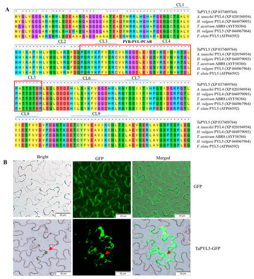 4.2. Analysis of TaPYL5 Protein Localization at the Subcellular Level