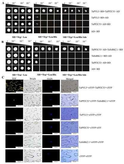 Chicago/Turabian StyleZhang, Yanyang, Yingjia Zhao, Xiaoyang Hou, Chenyang Ni, Le Han, Pingping Du, and Kai Xiao. 2023. "Wheat ABA Receptor TaPYL5 Constitutes a Signaling Module with Its Downstream Partners TaPP2C53/TaSnRK2.1/TaABI1 to Modulate Plant Drought Response" International Journal of Molecular Sciences 24, no. 9: 7969. https://doi.org/10.3390/ijms24097969